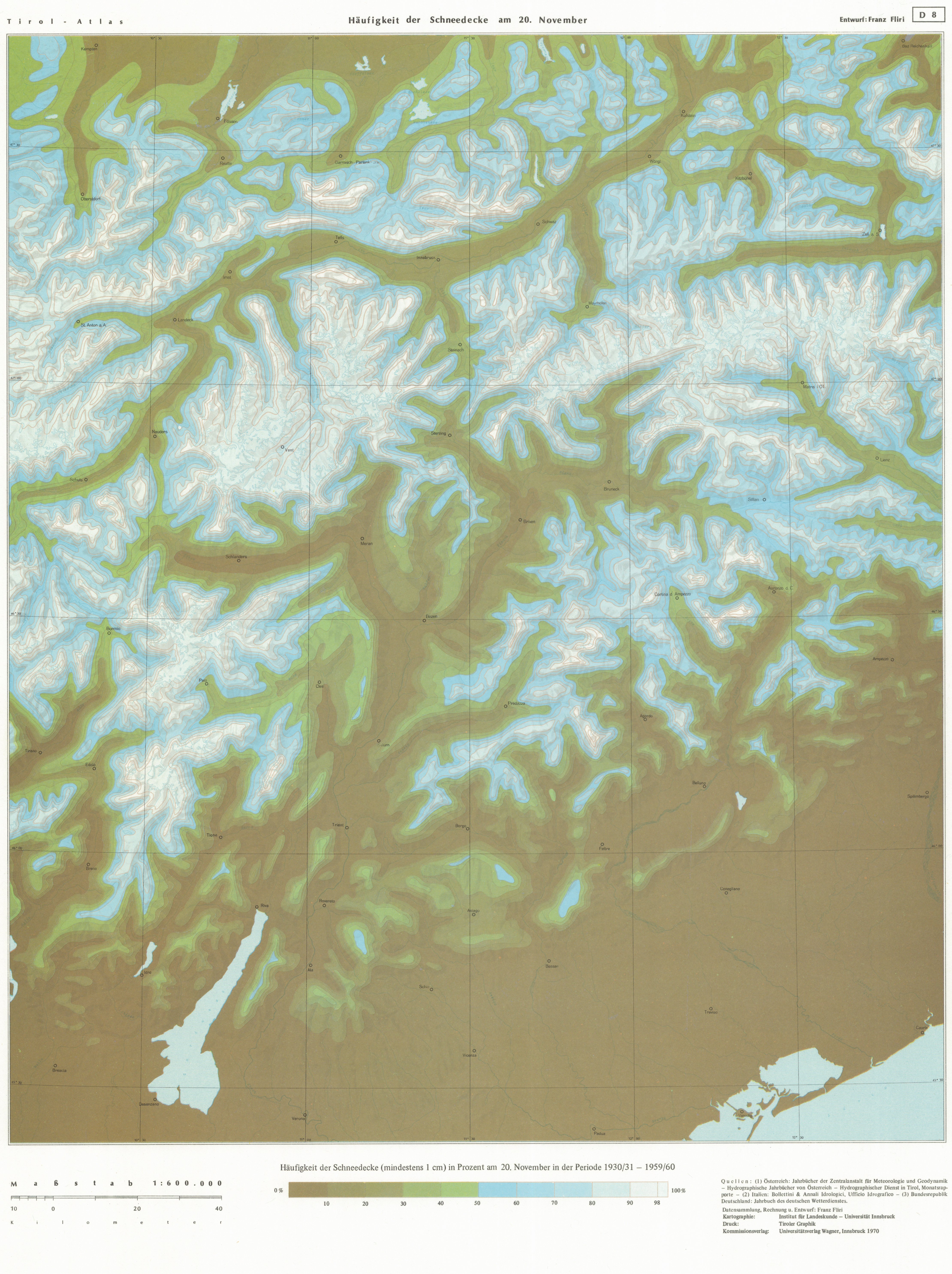 D8. Häufigkeit der Schneedecke am 20. November (1:600.000)