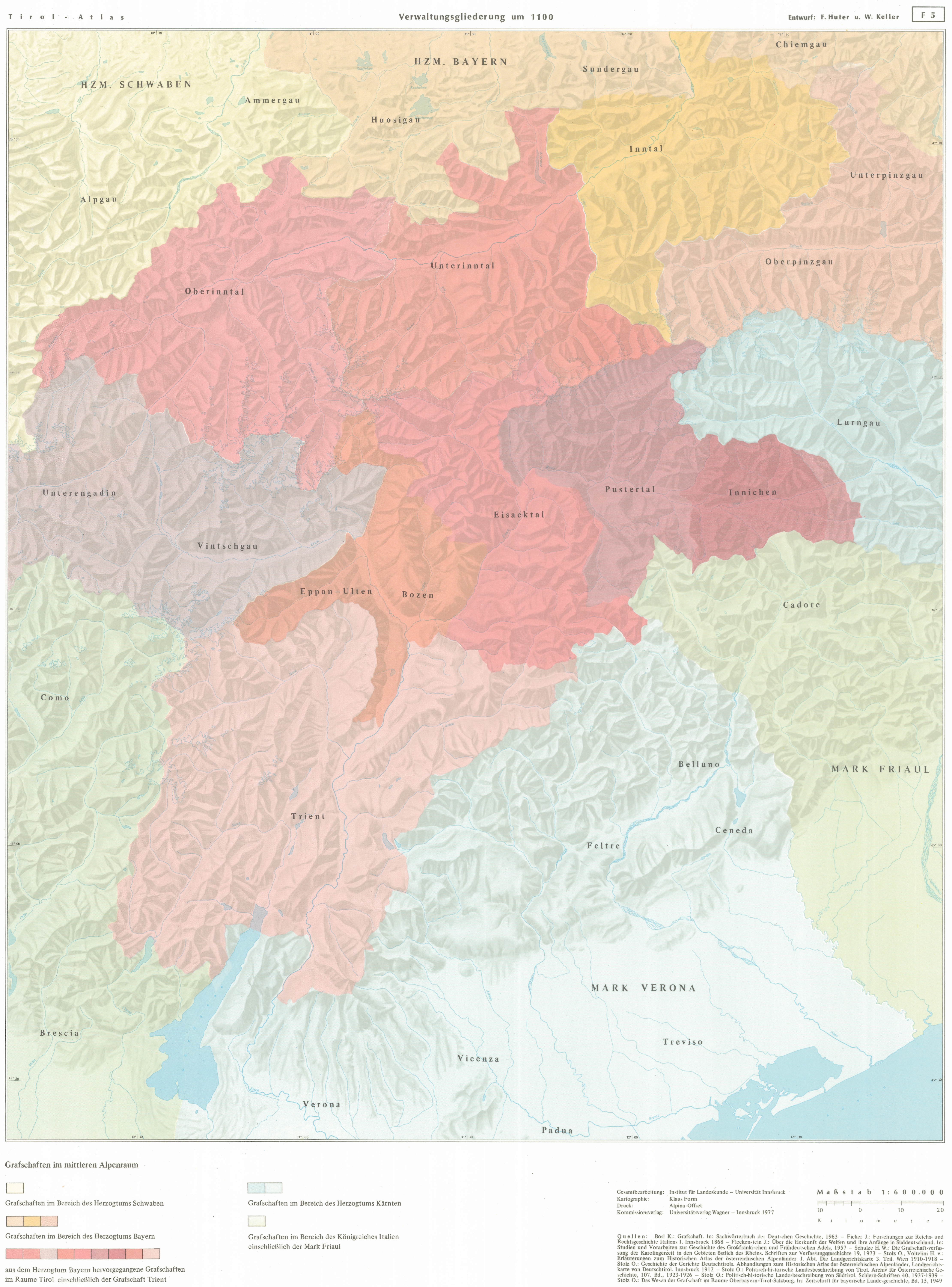 - Begleittext: Franz Huter: Grafschaften im mittleren Alpenraum. In: Tirol Atlas Begleittexte IV, S.41-45, Innsbruck 1977.