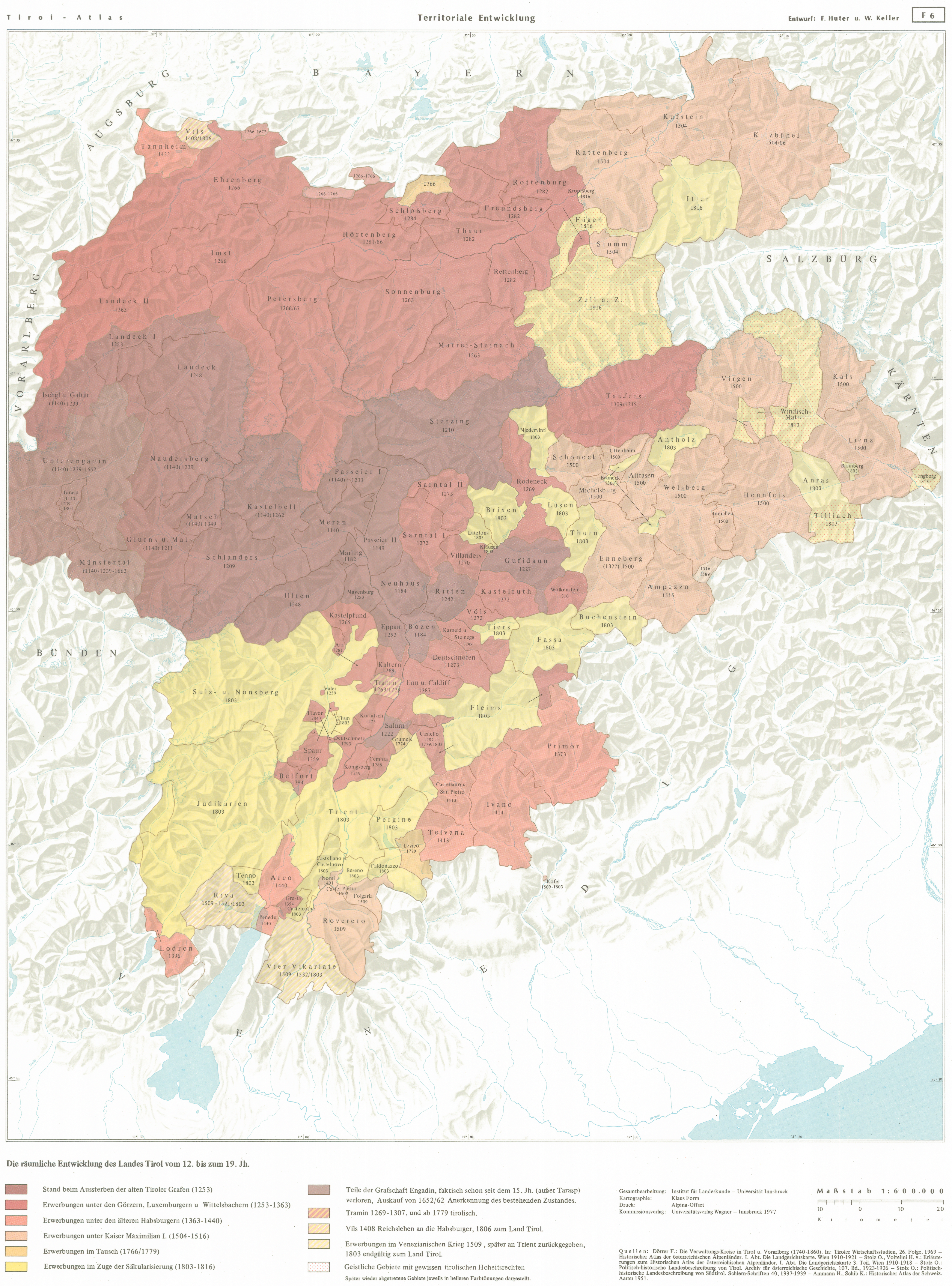 - Begleittext: Franz Huter: Die räumliche Entwicklung des Landes Tirol vom 12. bis zum 19.Jh.. In: Tirol Atlas Begleittexte IV, S.46-50, Innsbruck 1977.