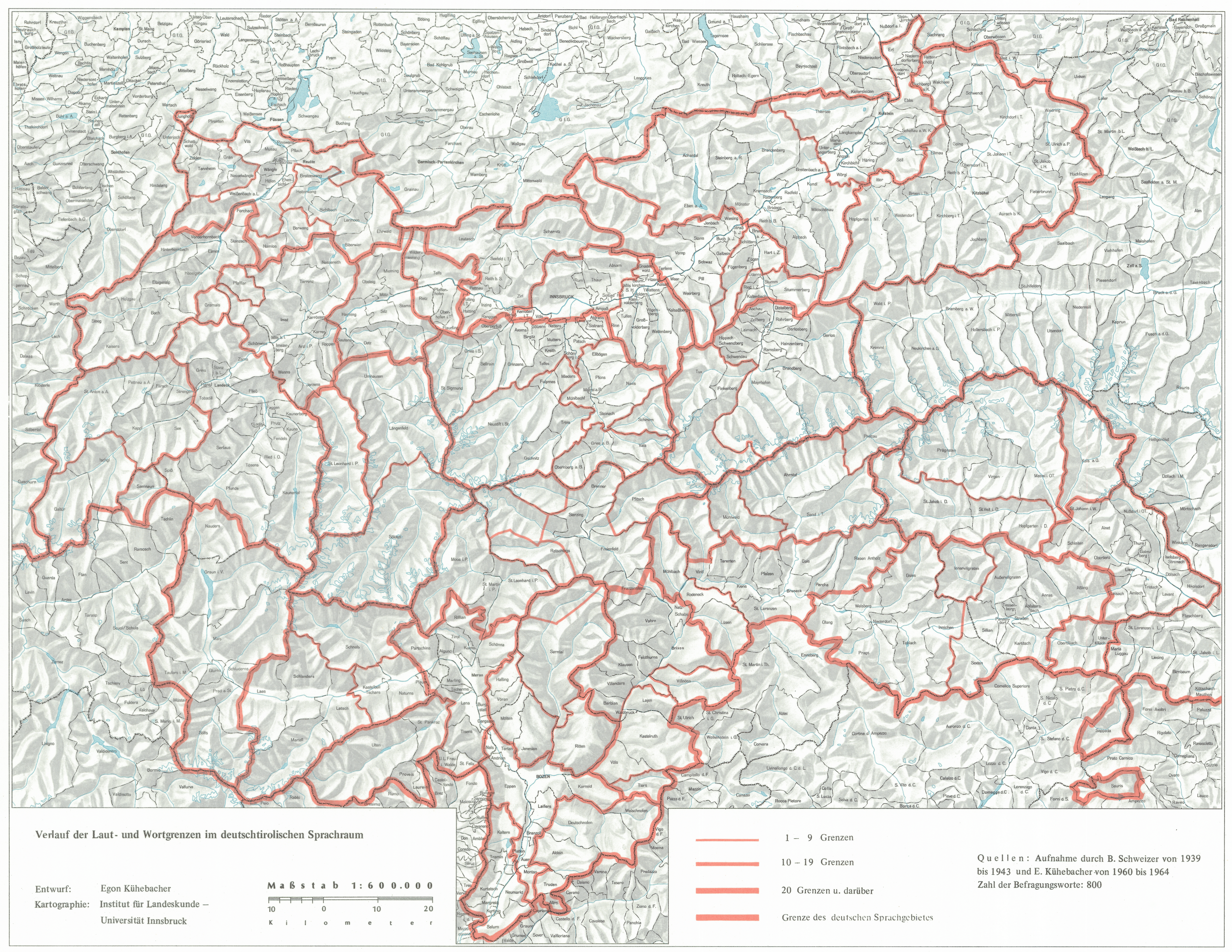 - Begleittext: Egon Kühebacher: Sprache und Dialekt. In: Tirol Atlas Begleittexte I, S.21-27, Innsbruck 1974.