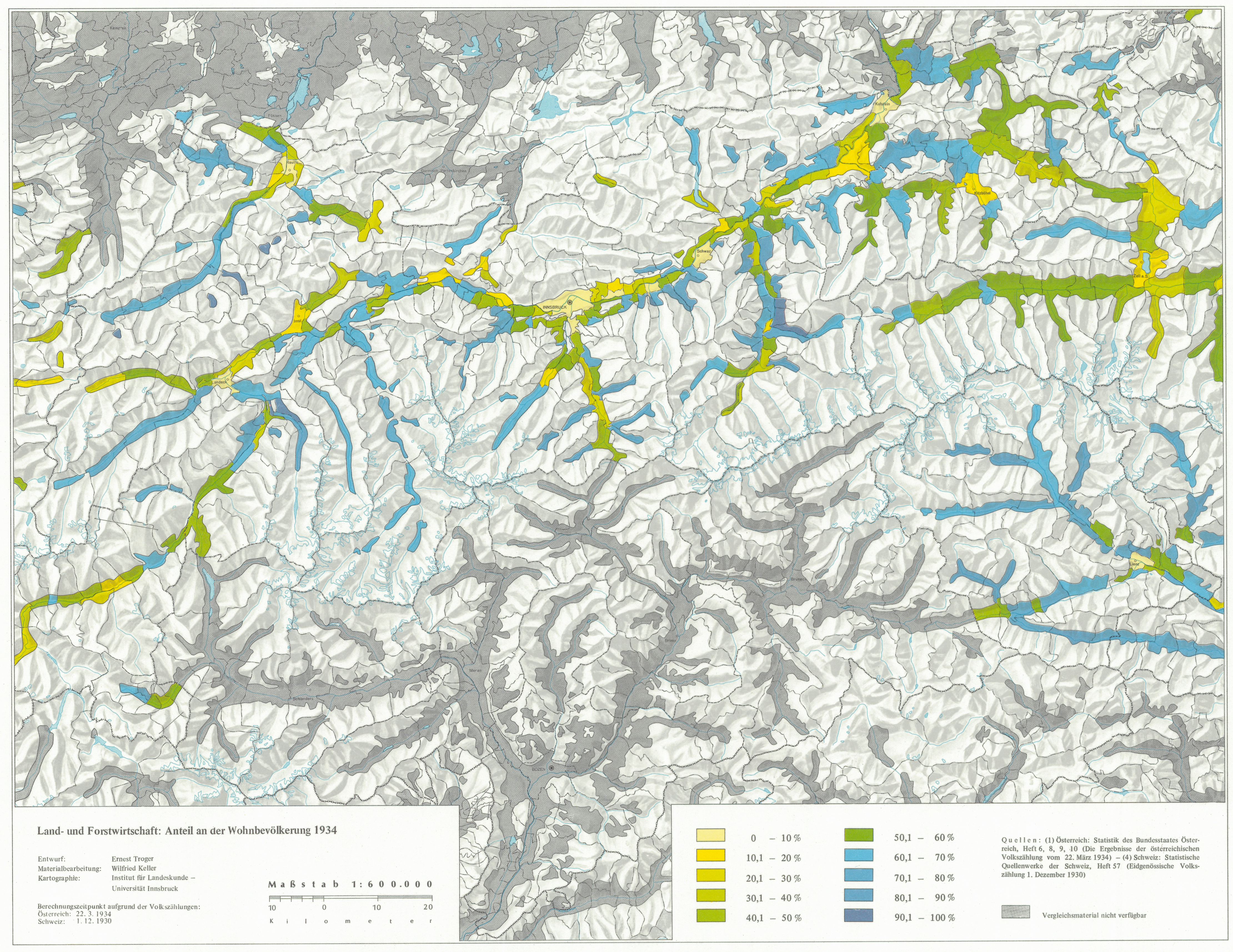 - Begleittext: Wilfried Keller: Bevölkerung - Verteilung, Entwicklung, Gliederung. In: Tirol Atlas Begleittexte I, S.32-33, Innsbruck 1974.