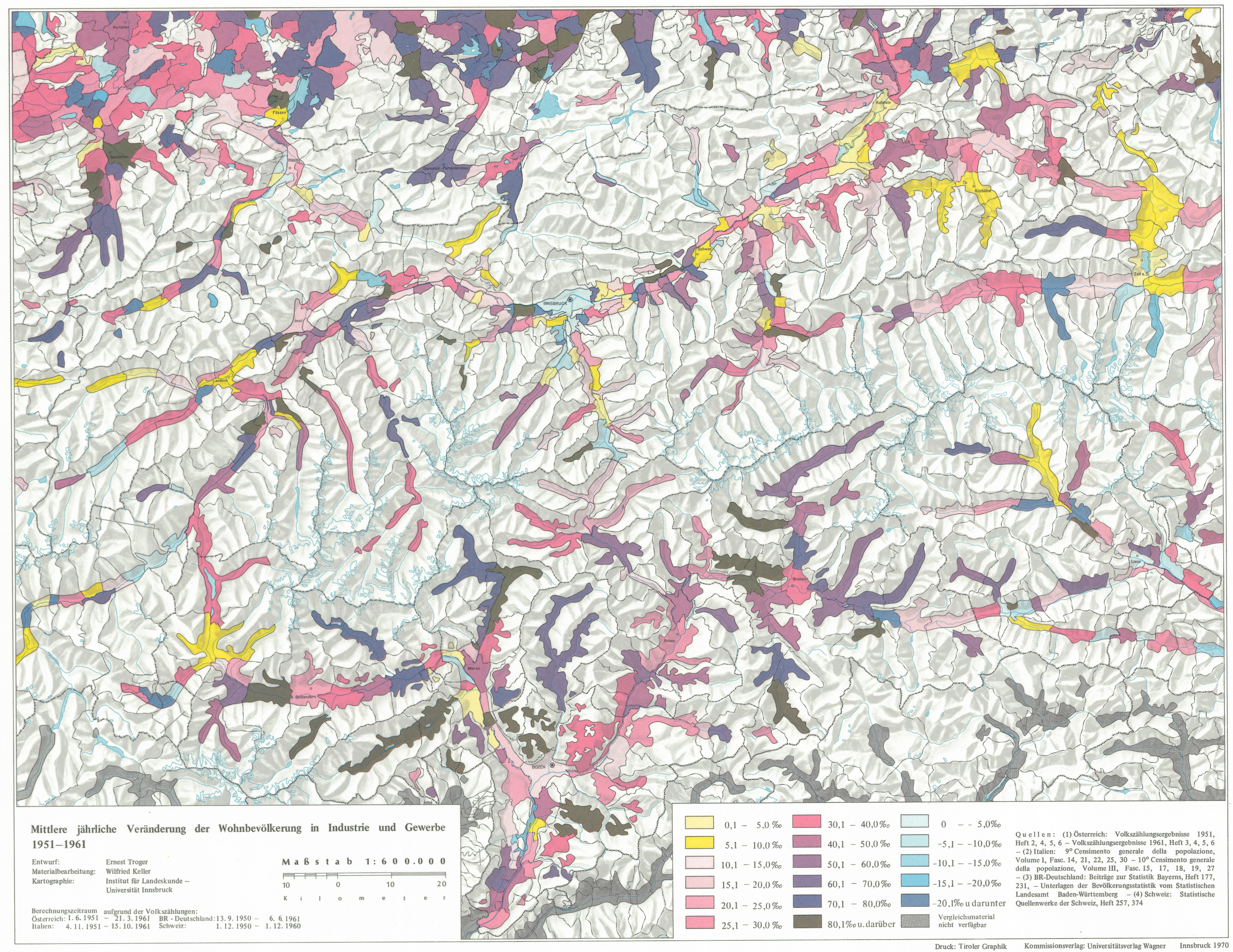 - Begleittext: Wilfried Keller: Bevölkerung - Verteilung, Entwicklung, Gliederung. In: Tirol Atlas Begleittexte I, S.32-33, Innsbruck 1974.