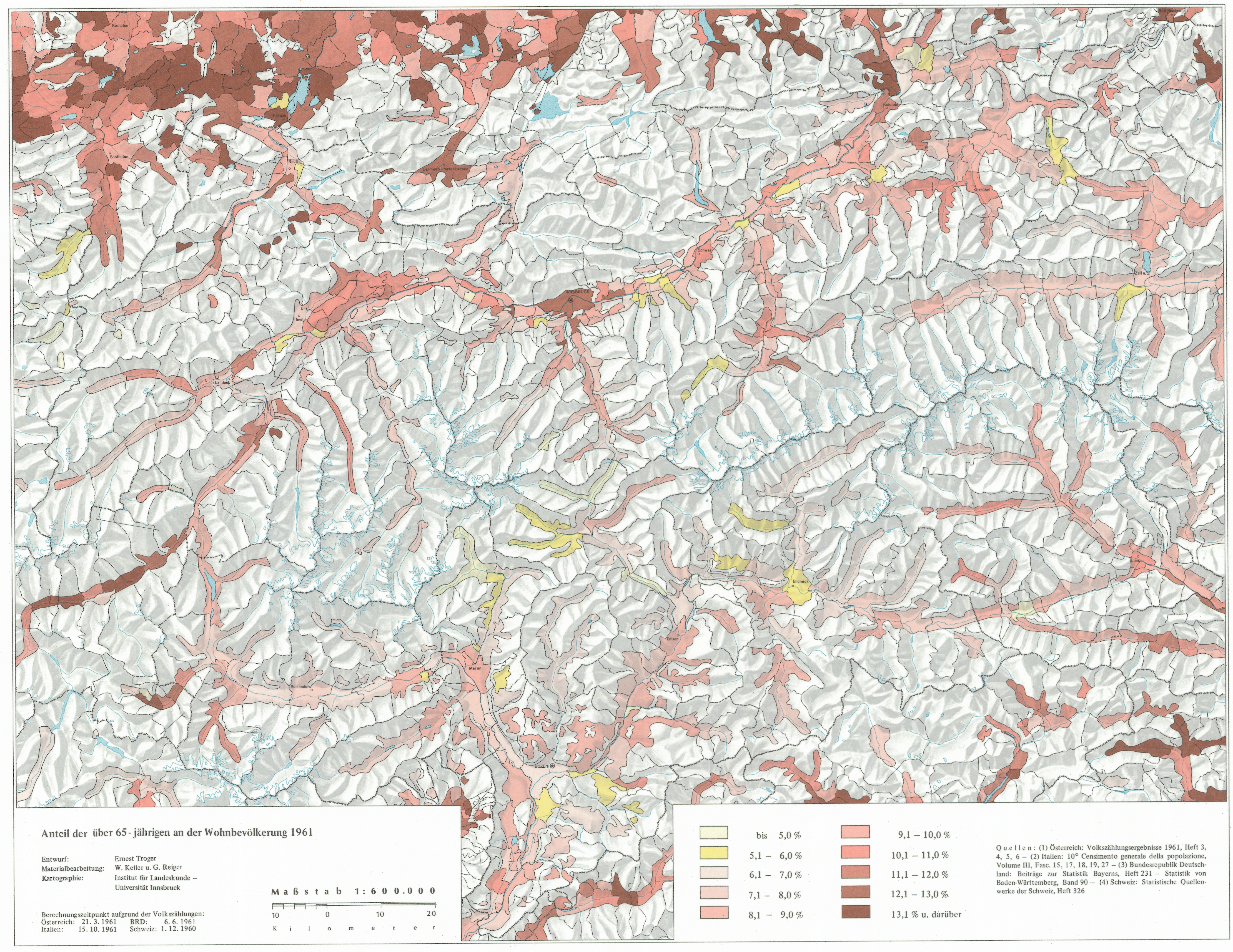 - Begleittext: Wilfried Keller: Bevölkerung - Verteilung, Entwicklung, Gliederung. In: Tirol Atlas Begleittexte I, S.33-34, Innsbruck 1974.