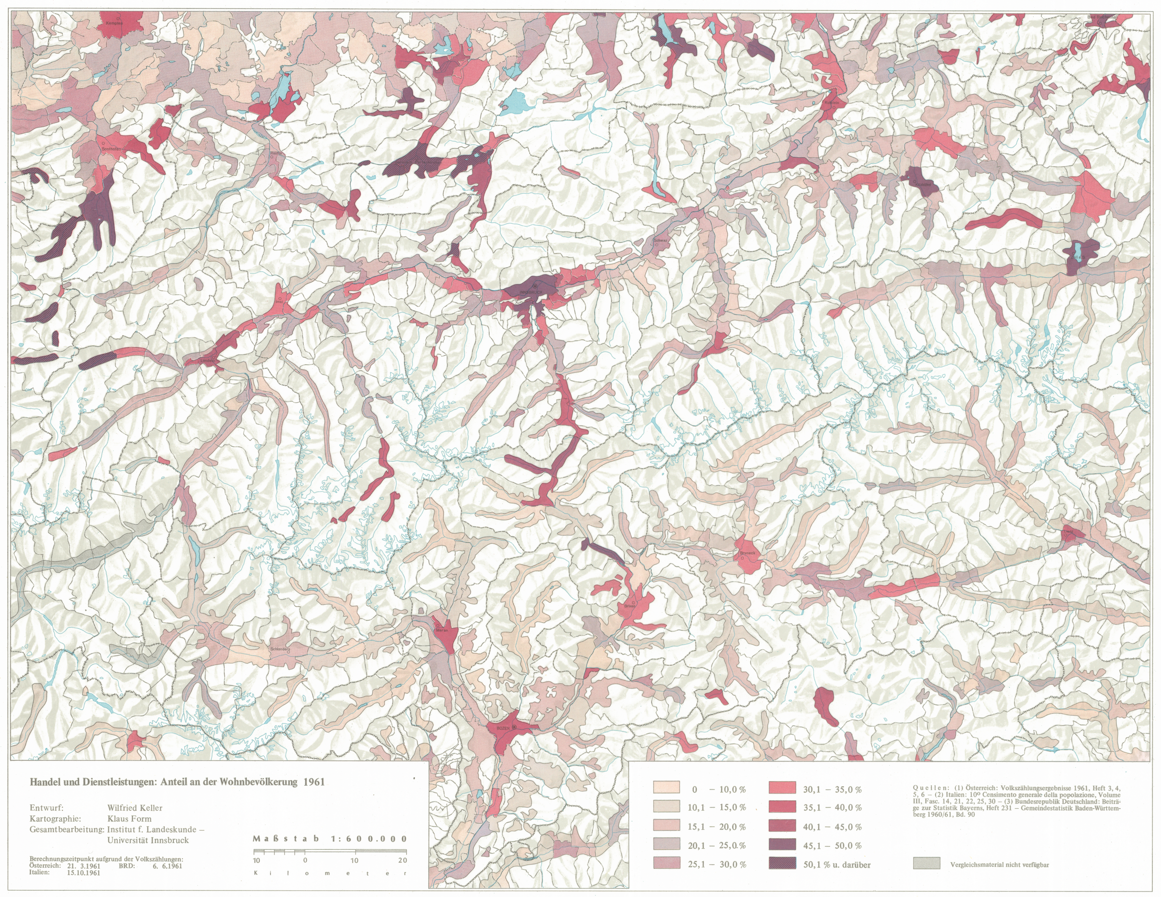 - Begleittext: Wilfried Keller: Bevölkerungsstruktur 1971 - Handel- und Dienstleistungen. In: Tirol Atlas Begleittexte IV, S.57-59, Innsbruck 1977.