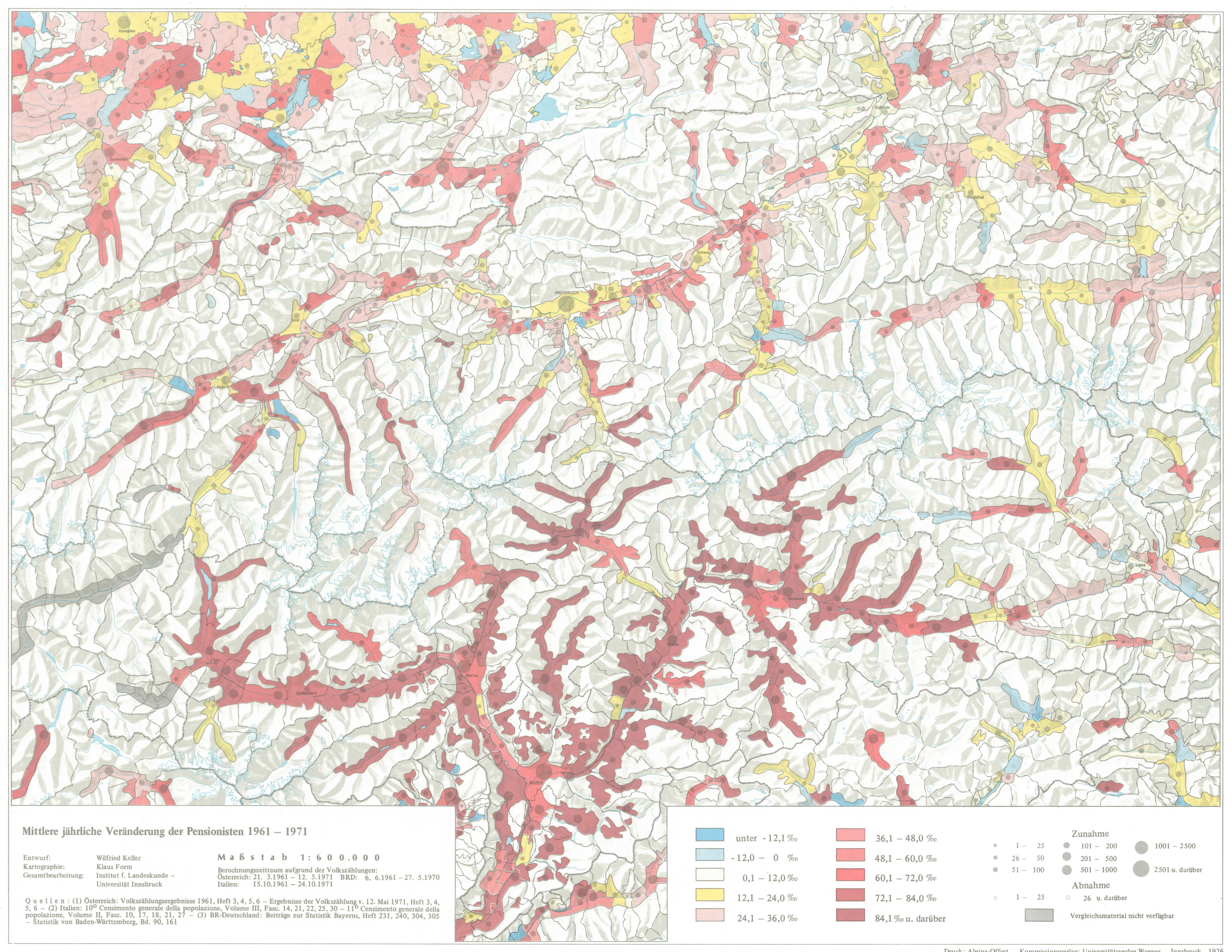 - Begleittext: Wilfried Keller: Bevölkerung - Verteilung, Entwicklung, Gliederung. In: Tirol Atlas Begleittexte III, S.18-19, Innsbruck 1976.