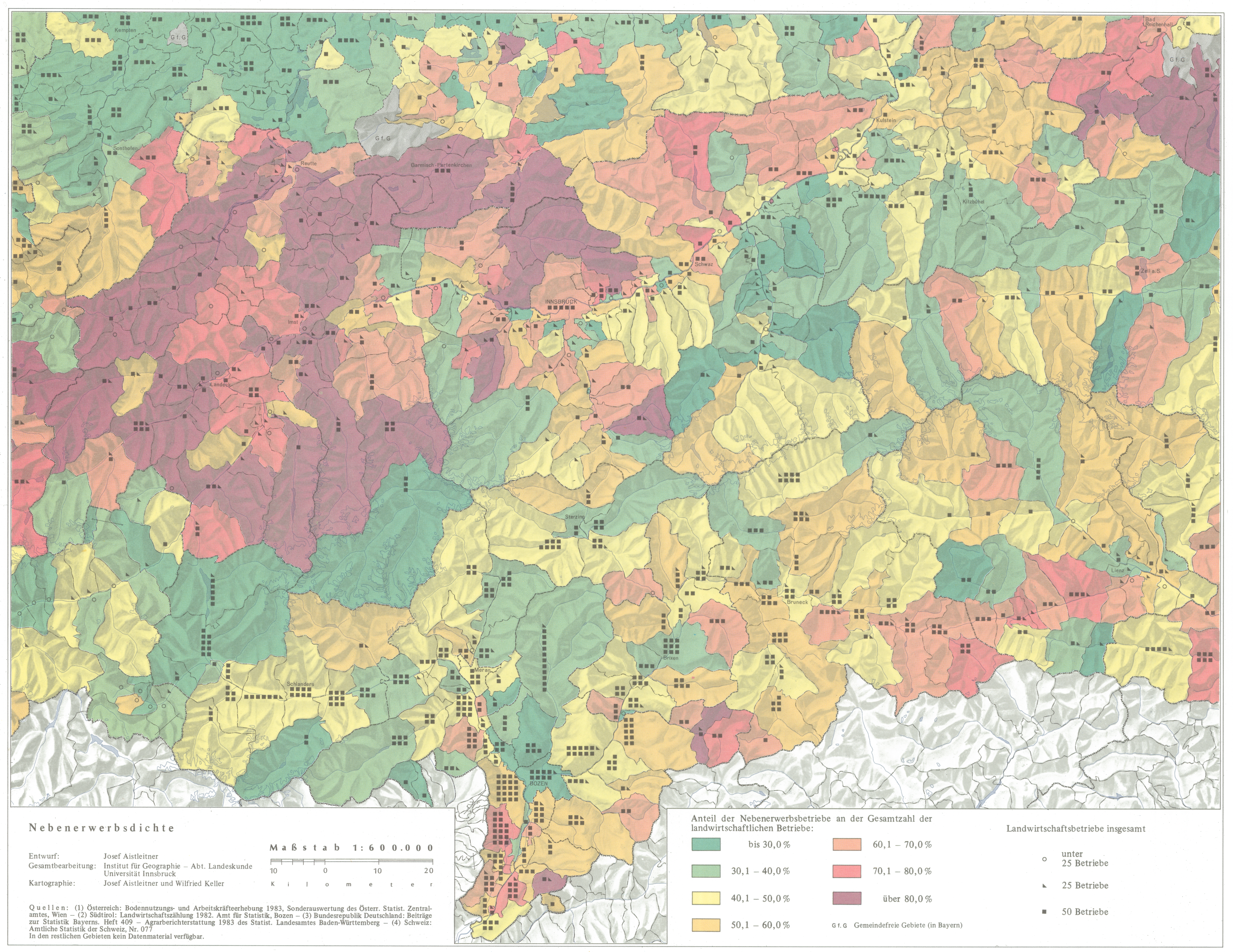 - Begleittext: Josef Aistleitner: Sozioökonomische Struktur der Landwirtschaft. In: Tirol Atlas Begleittexte X, S.41-46, Innsbruck 1988.