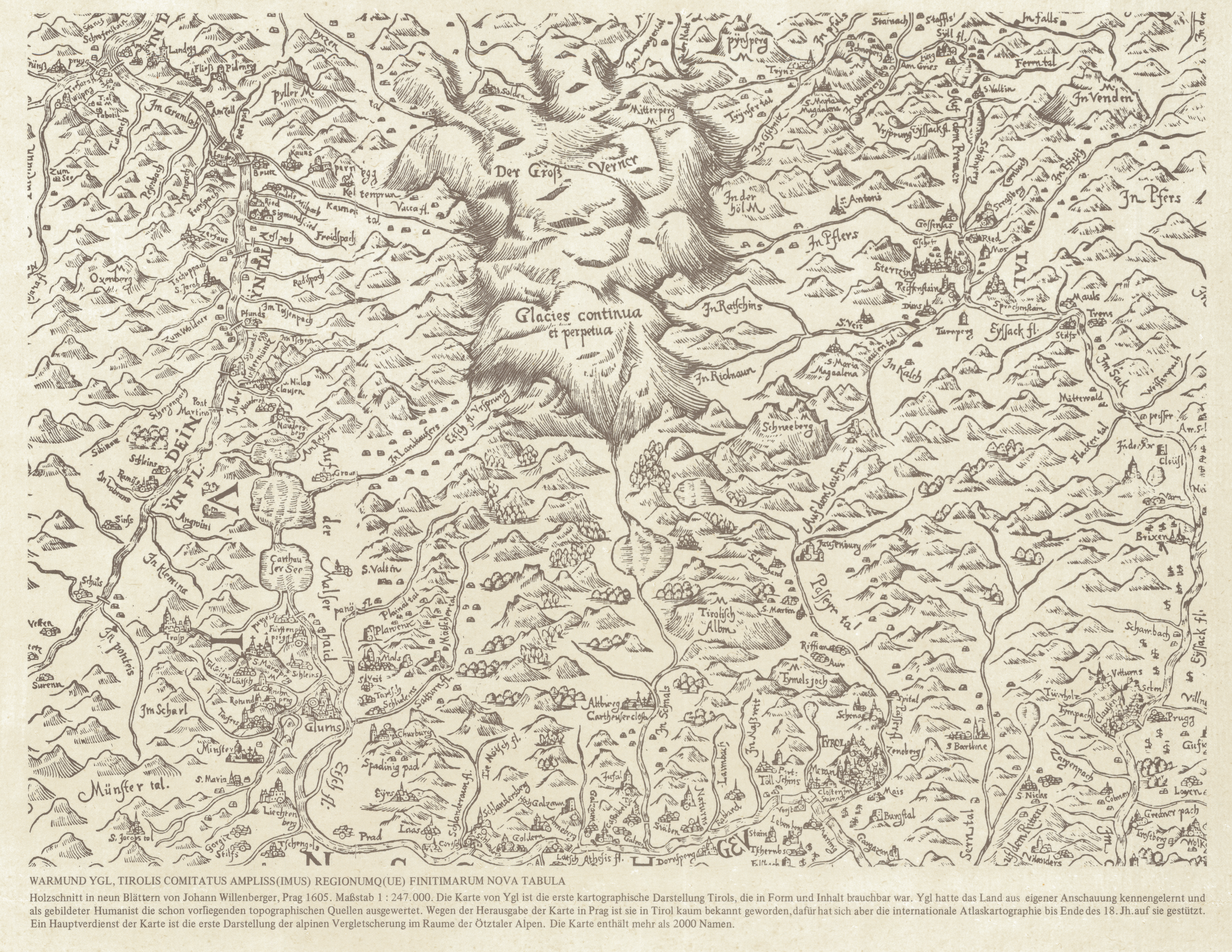 U5. Warmund Ygl, Tirolis Comitatus Ampliss(imus) Regionumq(ue) Finitimarum Nova Tabula (1:247.000)